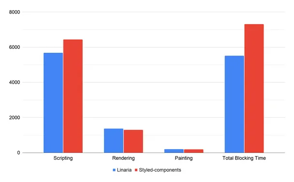使用 Styled Component 构建的页面拥有更多长时间运行的任务。与 Linaria相比,这些任务需要更长的时间才能完成。