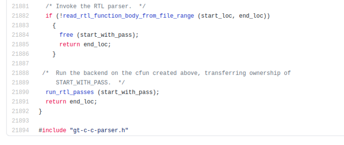 C语言就像现代计算之父,因为它提供了良好的方便人类阅读的抽象级别,同时又非常接近硬件。而GNU C编译器也是由C语言本身编写的,而且还用到了编译器自举(Bootstrapping)的概念。我在Github上GNU编译器集合的代码库中,看到了有史以来最长的C源文件(可能还有比这更长的,但这是我见过的最长的C源文件)。