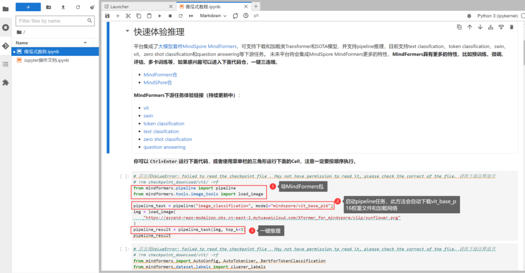 在Jupyter里,轻松运行MindSpore Transformers Pipeline: