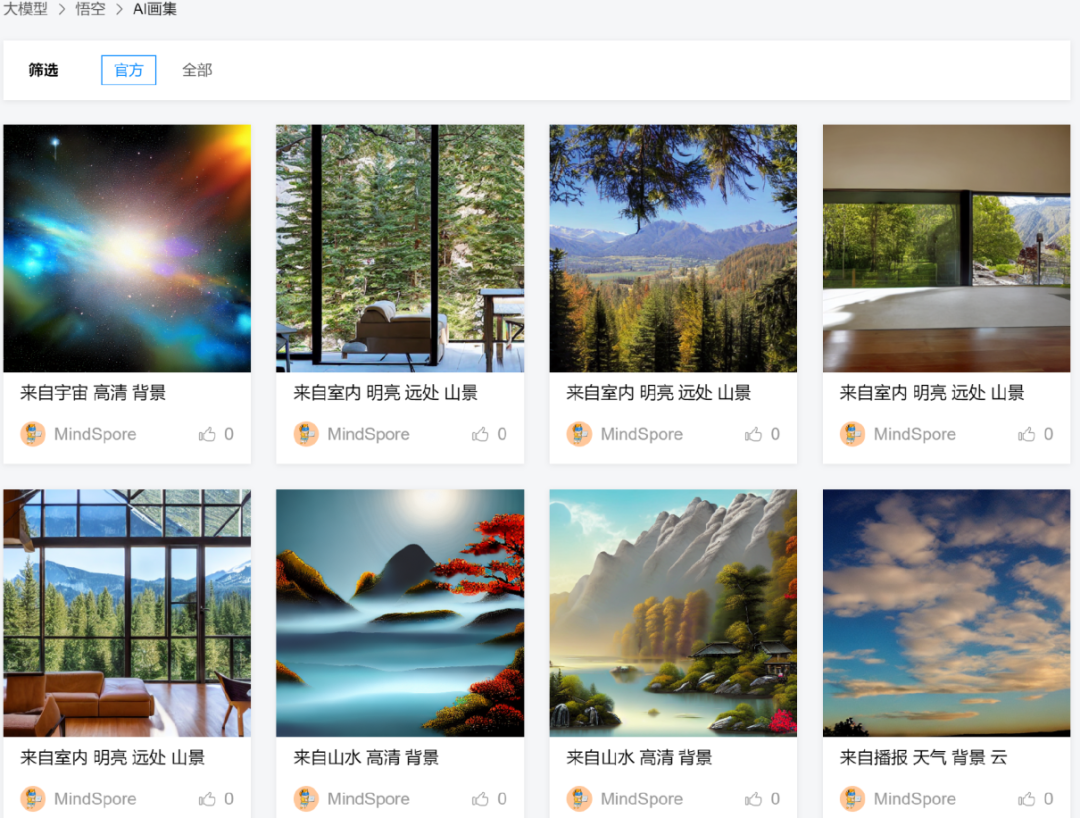 为提升开发者的参与感和趣味感,平台在原有的大模型在线体验模块,开放了业界首个基于悟空.画画以文生图大模型的技术社交互动能力,开发者可随心分享模型生成的优质画作;