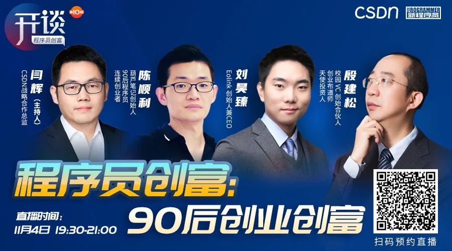 作者 | 闫辉责编 |屠敏出品 | CSDN(ID:CSDNnews)当我们羡慕 28 岁实现财富自由并决定离职退休的字节跳动程序员郭宇,敬佩 37 岁的雷军在财务自由后下场创办小米,并在 51 岁泪洒发布会,哽咽宣布以造车为目标进行人生最后一次重大创业时,我们发现,以技术创新为开端,程序员创富这条路,蕴藏了多种方式方法。为此,CSDN 重磅推出了《开谈:程序员创富系列》视频对话栏...