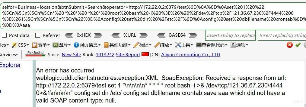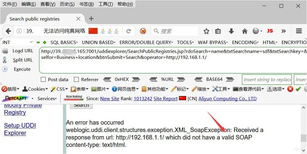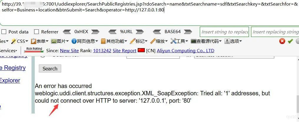 SSRF漏洞存在于http://your-ip:7001/uddiexplorer/SearchPublicRegistries.jsp