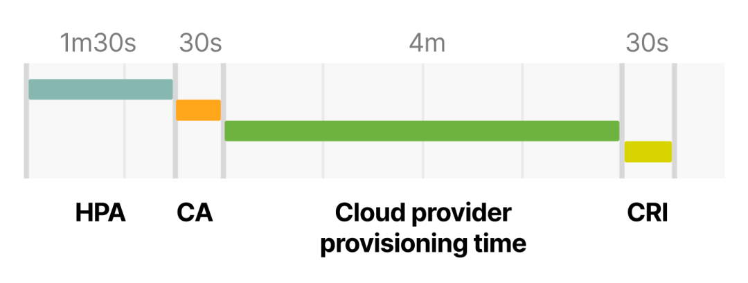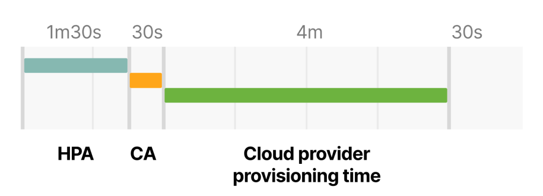 最多只能容纳 2 个 Pod,扩展副本时最长耗时 7 分钟(HPA、CA、云服务商的资源配置耗时)
