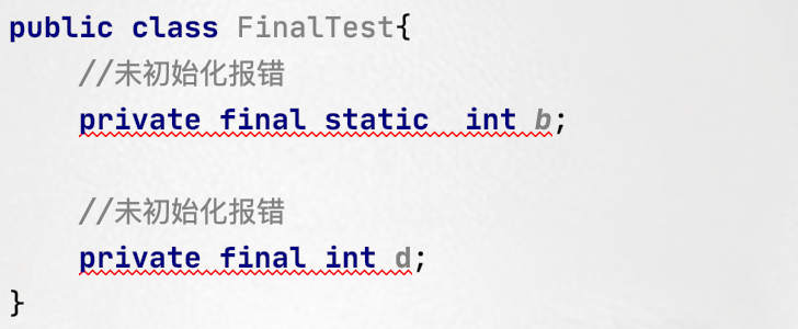 public class FinalTest { //a变量直接赋值 private final static int a = 1;
