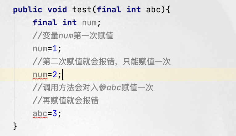 如果 final 变量未进行初始化,可以进行赋值,并且只能进行一次赋值,一旦赋值之后再次赋值就会出错。