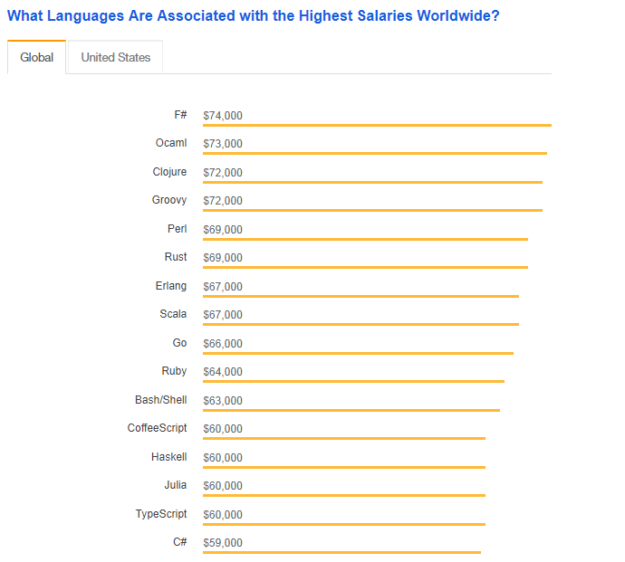 F# 和 OCaml 开发者收入最高